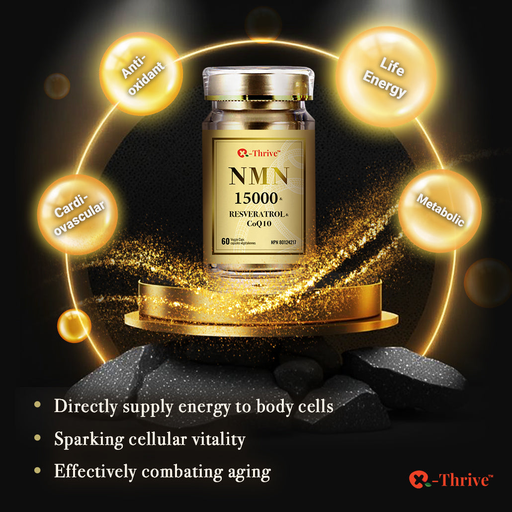 X-Thrive NMN15000 & Resveratrol & CoQ10 Nicotinamide Mononucleotide 99% Purity for Improved Metabolic Function, Cardiovascular Health, Enhanced Cognitive Function